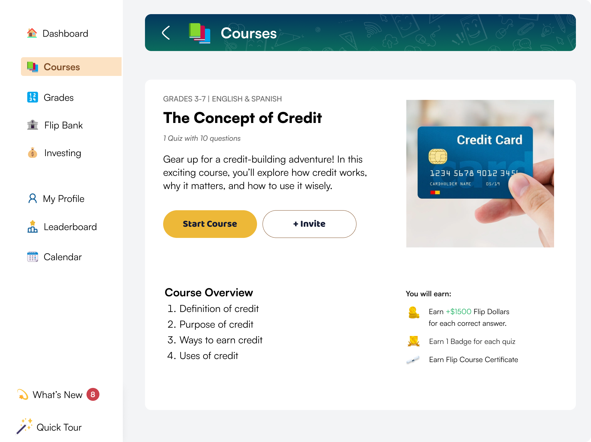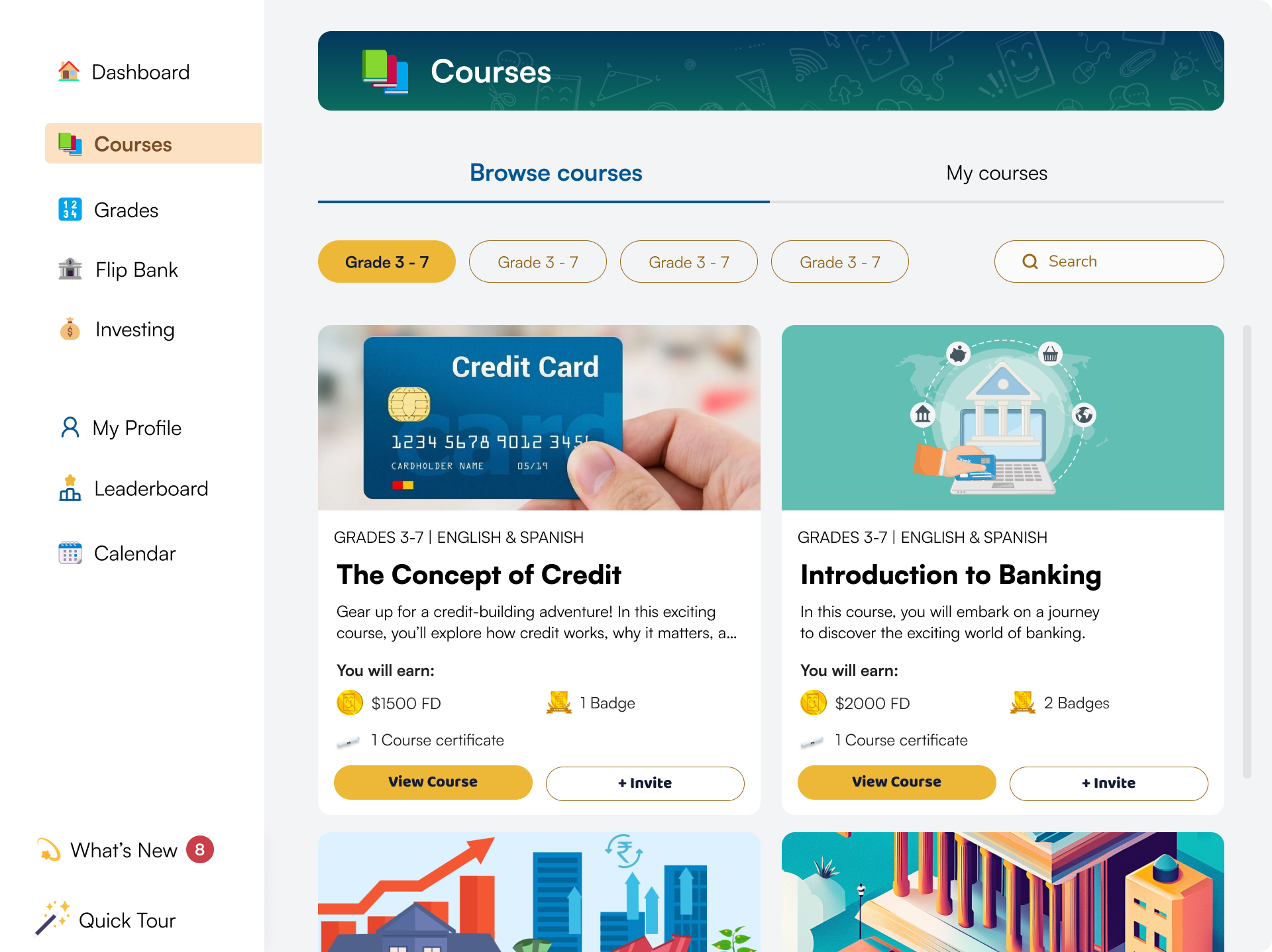 We redesigned financial education as play—using gamified lessons, challenges, and rewards to make learning intuitive and fun. This approach keeps students engaged, improves retention, and builds real-world financial confidence through hands-on exploration.